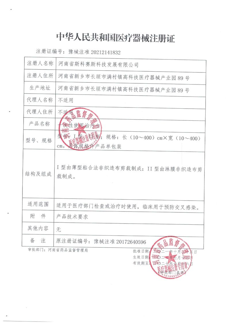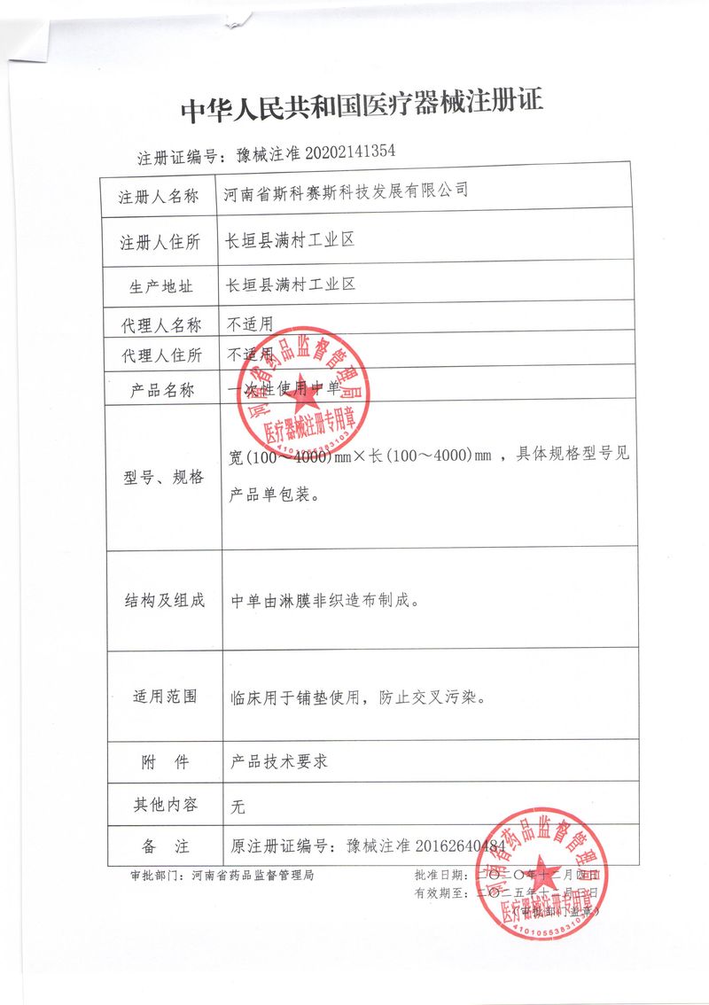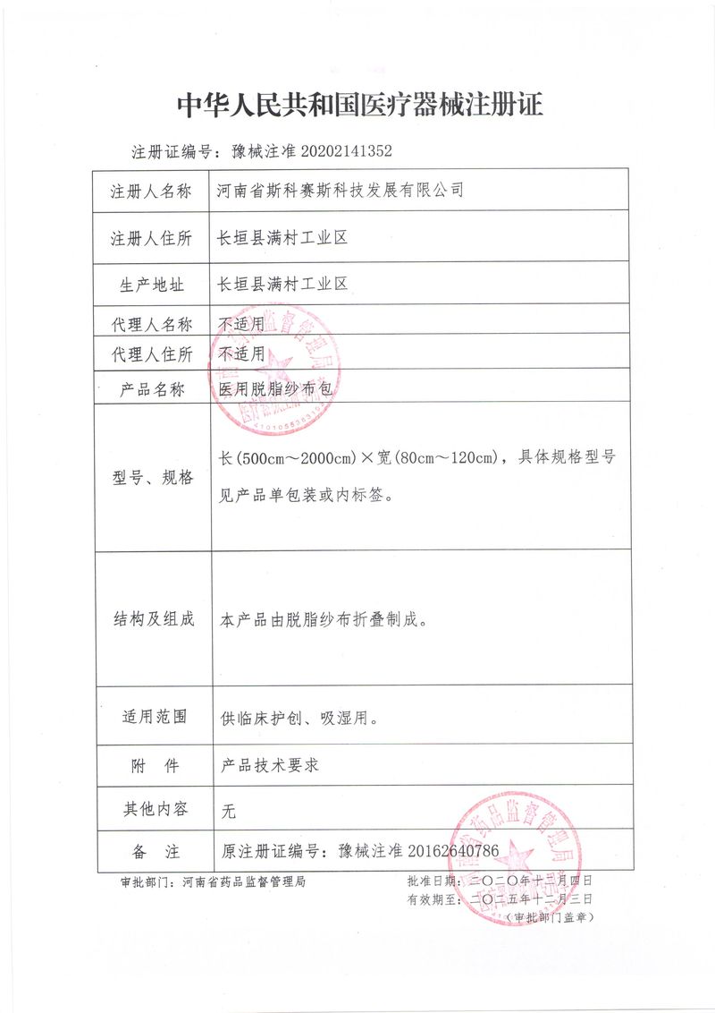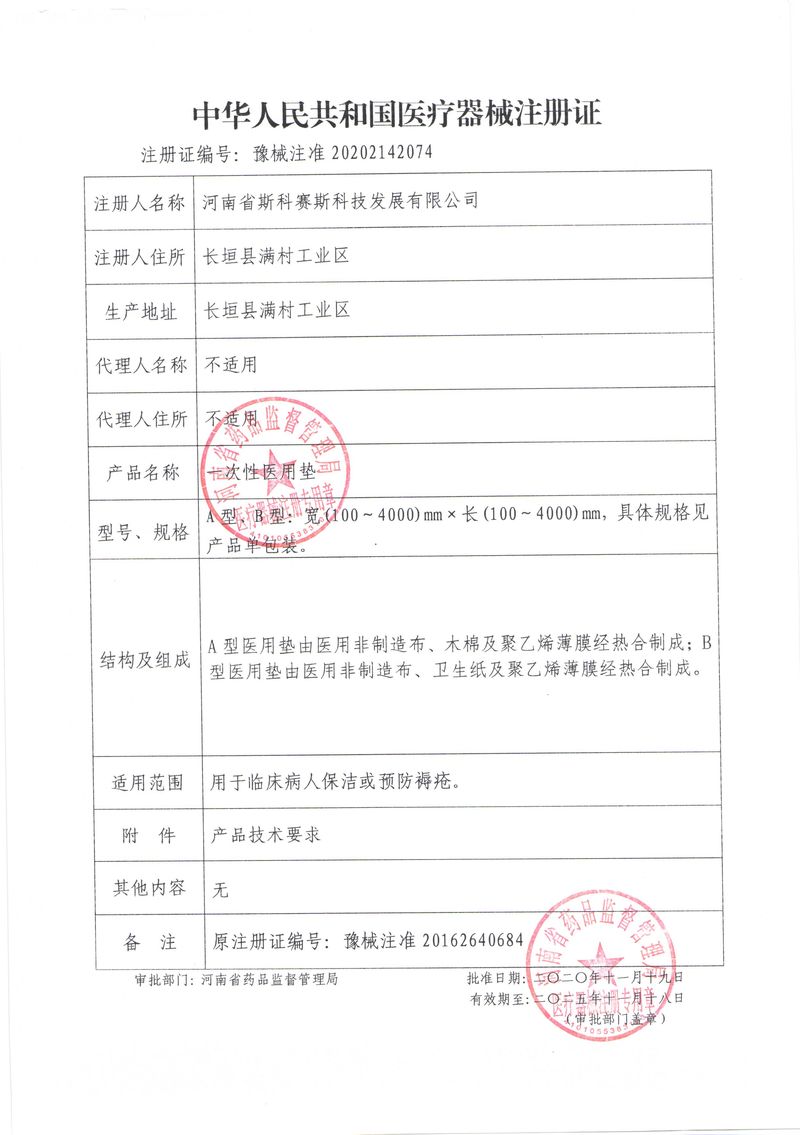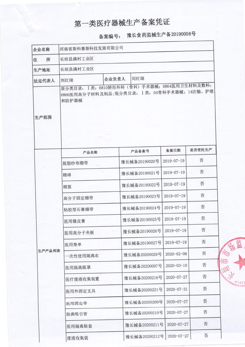 河南省斯科賽斯科技發(fā)展有限公司創(chuàng)建于 2011 年,位于“中國醫(yī)療耗材之都”- 河南省長垣縣,西臨 308 省道,南靠新菏鐵路,北依長濟高速,交通便捷,經(jīng)濟發(fā)達,環(huán)境優(yōu)美。斯科賽斯積極進入醫(yī)療健康和服務領域,秉承為用戶創(chuàng)造價值的理念,專注于醫(yī)用耗材解決方案的研發(fā)和運營,并為用戶提供完善的產(chǎn)品解決方案;  斯科賽斯主要生產(chǎn)醫(yī)用麻醉系列、醫(yī)用高分子系列、醫(yī)用敷料包系列、醫(yī)用無紡布系列、醫(yī)用防護系列、醫(yī)用脫脂棉系列、生物材料制品類等七大類、100 多個品種、400 多個規(guī)格的產(chǎn)品。公司占地面積約 30000 平方米,建筑面積20000 平方米,擁有 10 萬級的凈化車間總面積 10000 平方米。擁有國際先進水平的生產(chǎn)設備和檢測儀器,技術裝備精良,檢測手段完善,為醫(yī)療行業(yè)的不斷發(fā)展進步提供保障。公司順利通過 ISO9001、ISO13485 質量管理體系認證?! ∷箍瀑愃箞猿盅邪l(fā)高科技新產(chǎn)品,力爭在醫(yī)療器械關鍵領域取得技術和研發(fā)的重大突破;立足國內(nèi)和國際兩個市場,逐步實現(xiàn)管理理念、經(jīng)營機制、人力資源、技術、產(chǎn)品、市場等全方位對接,提高企業(yè)的核心競爭力;過去的歲月里,斯科賽斯砥礪前行,誠信務實,銳意進取,不斷創(chuàng)新,用自己的睿智和辛勞,以富有責任感的使命,在探索中追求,在追求中超越,致力于成為值得信賴的醫(yī)療用品生產(chǎn)企業(yè)!在未來的日子里,斯科賽斯將一如既往豪情滿懷,信心百倍,攜手并肩,執(zhí)著追求,向更高的的目標前進,鑄造新的輝煌!